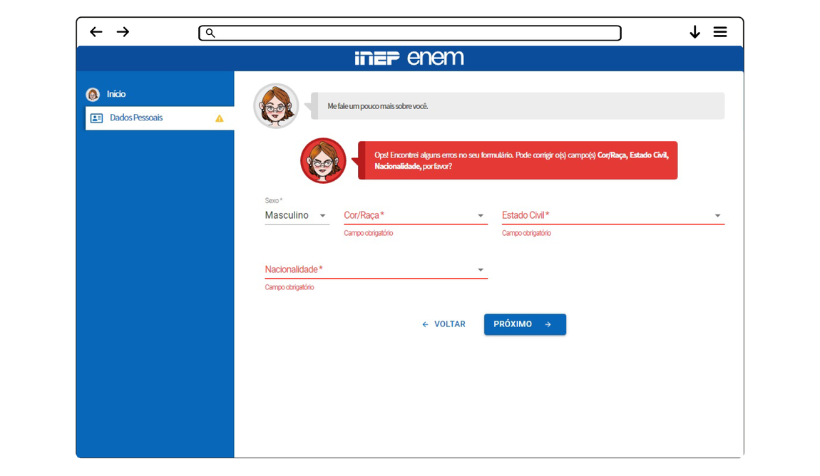 4 – Prossiga de acordo com as orientações e confirme as informações solicitadas. Dados como “Cor/Raça”, “Estado Civil” e “Nacionalidade”, entre outros, são obrigatórios.
